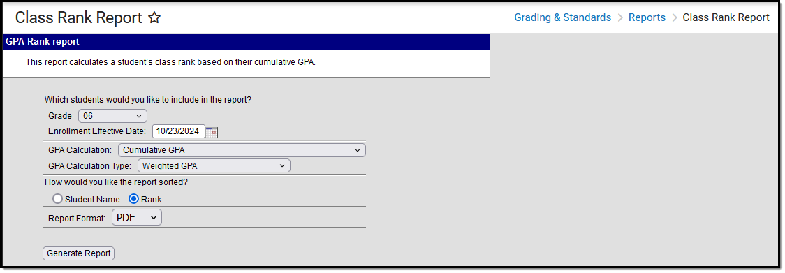 - Once class rank has been reviewed, determine the date to save a final year report for class rank.
