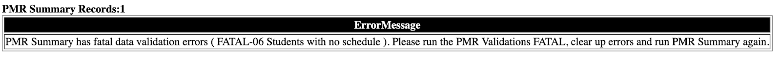 - If there are Fatal Validations, the PMR Extract will not generate and a message box similar to the one below will appear.